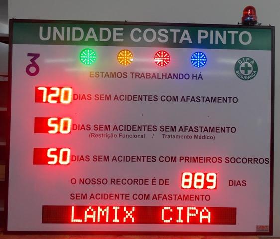 Com foco na segurança e na conscientização contínua, o Painel de CIPA da Lamix apresenta o acompanhamento dos dias sem acidentes de forma clara e segmentada. Os dados são exibidos por nível de gravidade do acidente e total consolidado da empresa. O painel ainda possui um módulo de mensagem para transmitir informações variadas aos colaboradores.